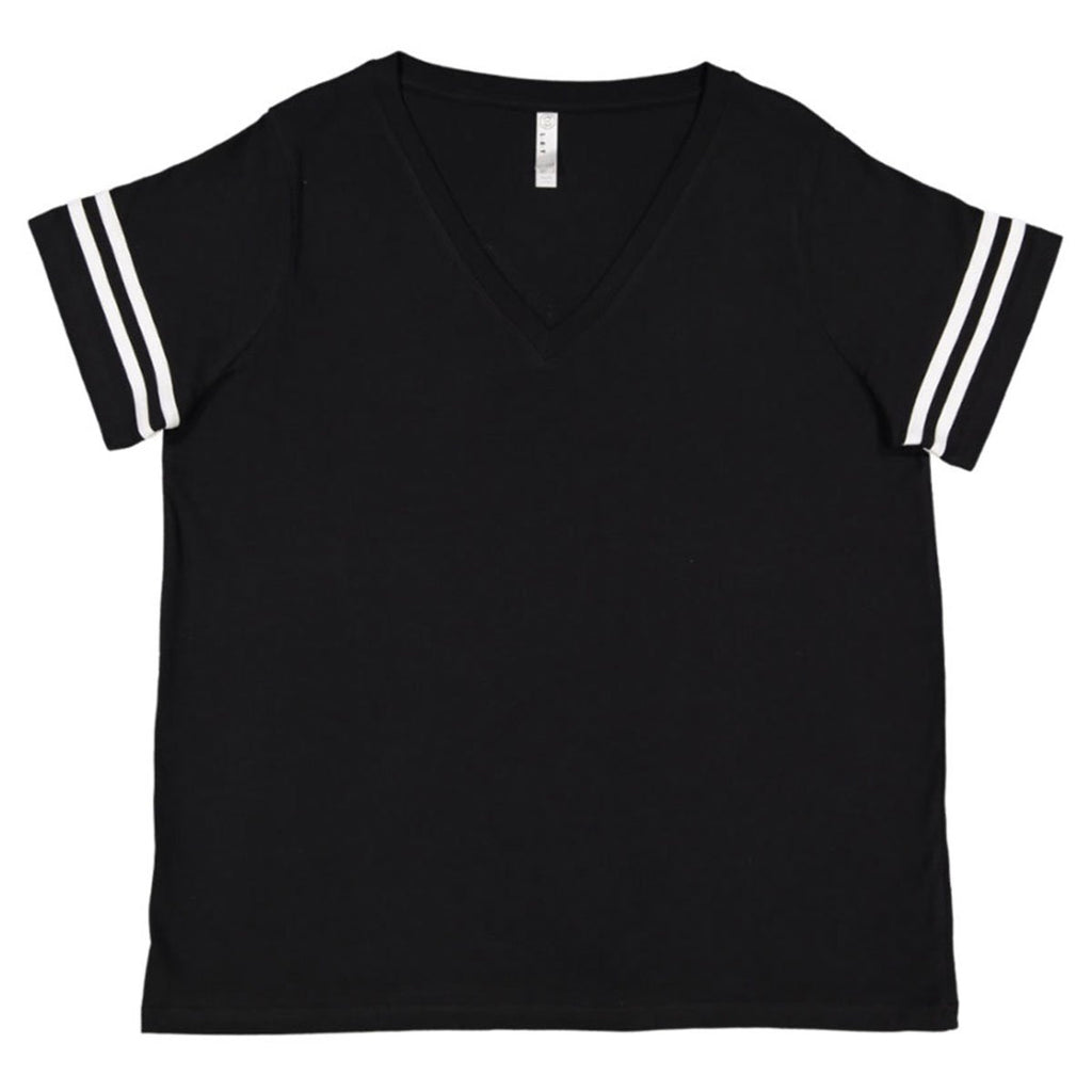 LAT Women's Black/White Curvy Football Premium Jersey T-Shirt