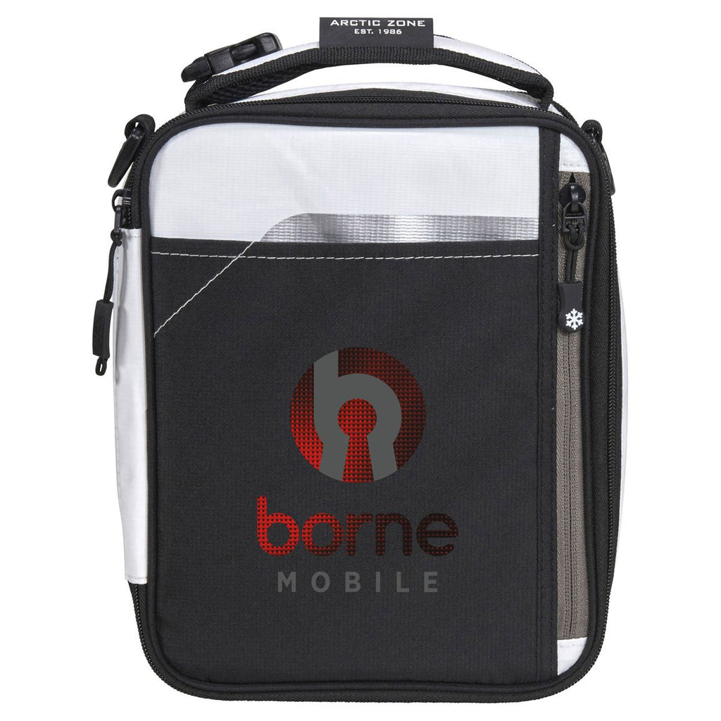 Use the outside pocket on the Arctic Zone White Titan Deep Freeze Expandable Cooler to expand upon the cooler's capacity. You can get up to six cans added into this cooler bag. You can get this accentuated with custom logo features to produce a more outstanding style that your customers or employees will love to receive as a gift.The minimum order for this product is 24 pieces.