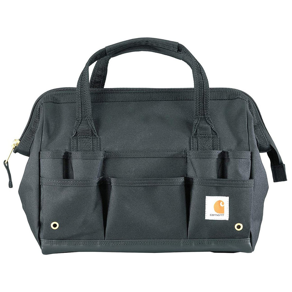 On the hunt for an item to sets you apart on the job site or as a functional gift for a tradesman? Now you can customize the Carhartt Black Heritage 14 Inch Tool Bag to incorporate it into your business. Carhartt keeps it classic with this 14 Inch Tool Bag made of heavy-duty synthetic fabric and engineered for a functional design to tote the tools of the trade. It's treated with Rain Defender water repellent and features a tough tear-proof, abrasion-resistant base. The Tool Bag is topped with rugged top handles for lasting comfort and carrying convenience. Its tool placement storage is defined by 17 exterior pockets and 10 interior pockets. Makes a great corporate gift in niches involving plumbers, electricians, HVAC technicians, carpenter, auto-electrician, mechanic, handyman etc.