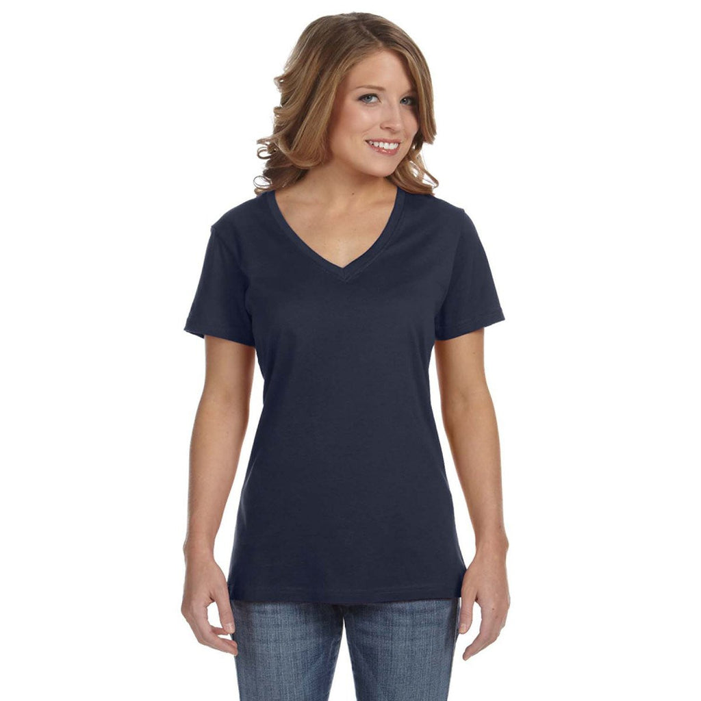 Anvil Women's Navy Ringspun Featherweight V-Neck T-Shirt