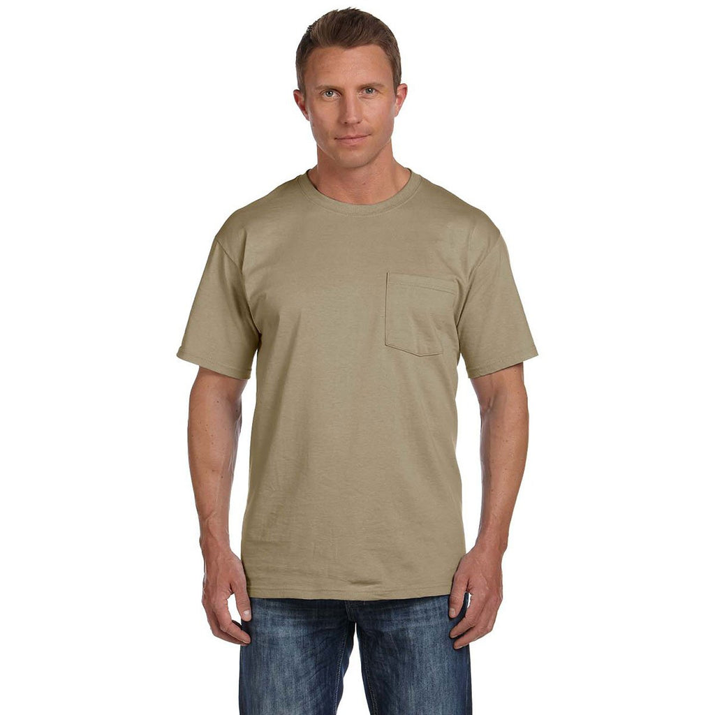 Fruit of the Loom Men's Khaki 5 oz. HD Cotton Pocket T-Shirt