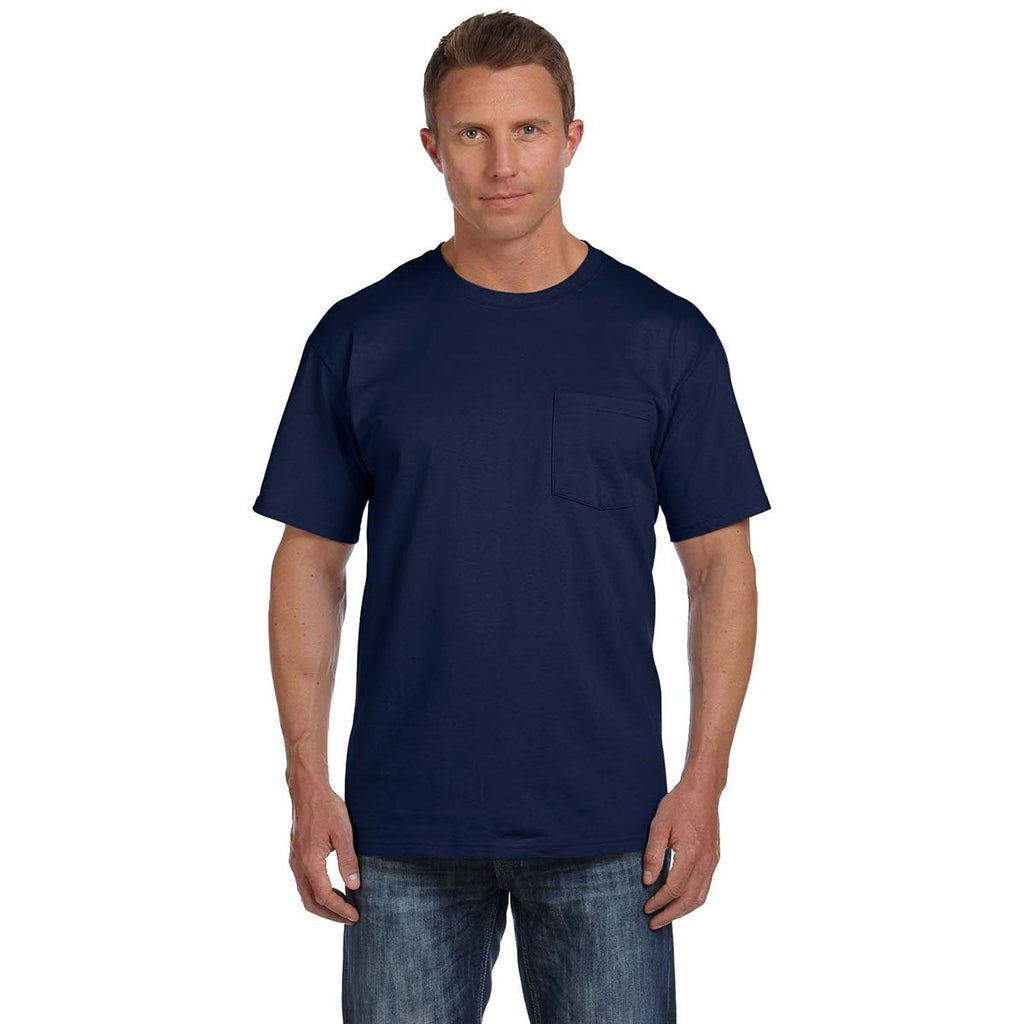 Fruit of the Loom Men's J Navy 5 oz. HD Cotton Pocket T-Shirt