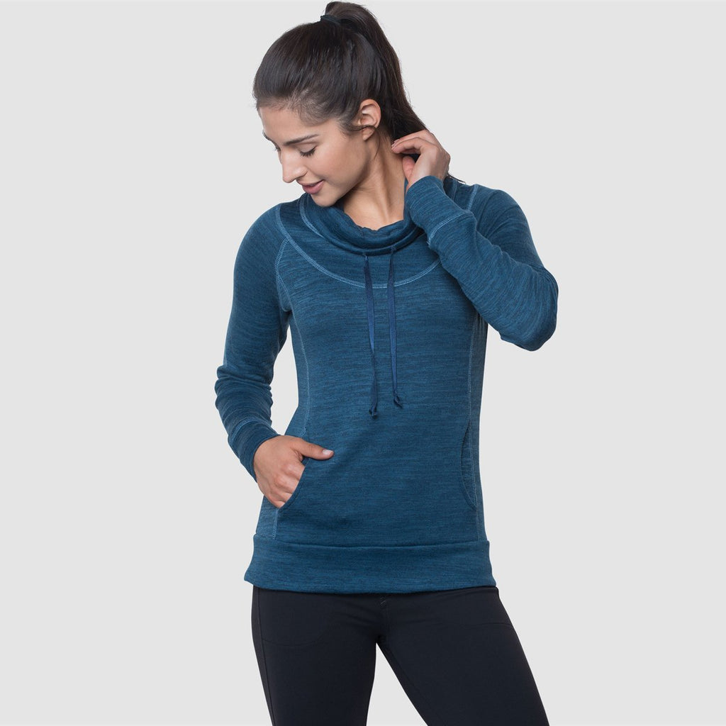 Wear the company logoed KUHL Women's Harbor Lea Pullover as an outer layer or as an inner layer to protect you against frigid winter temperatures. Soft polyester includes enough spandex to enhance your mobility during cold weather home improvement projects. Rugged polyester resists the types of rips and tears that send other styles of pullovers to the trash bin. The draw cord along the cowl neck offers protection for your head against icy blasts of air. Thumbholes located at the cuffs offer protective layering for your hands. Attach your corporate logo to increase recognition for your company everywhere you go.Highlights