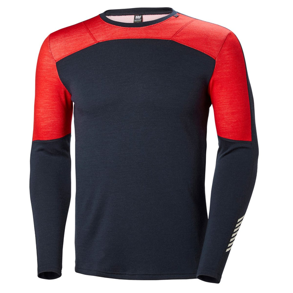 If you're working or playing outdoors in cold weather, the Helly Hansen Men's Navy Lifa Merino Crew, with your company's custom logo, is the first step to keeping warm. It features two layers in one, including wool and Helly Hansen's technical Lifa fibers. It can be the base layer to help lock in the warmth. Your company could order a logoed supply for its stock of industrial company clothing. It never hurts to get your company name out there on any kind of clothing, and the Helly Hansen branding on this product is inconspicuous enough to allow your company logo to stand on its own.Highlights