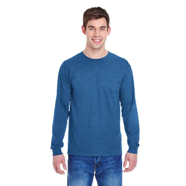 A comfortable company logoed Fruit of the Loom Men's Retro Heather Royal 5 oz. HD Cotton Long-Sleeve T-Shirt is a must have addition for every wardrobe. Add a custom screen print to one of the 41 available colors to create a company brand that everyone can recognize. Perfect for employee apparel or to use at trade shows to draw in customers, these 100% cotton preshrunk jersey long sleeve tees are double stitched with high density fabric for exceptional printing clarity. Great to wear and keep comfortable at golf events on cooler days, this long-sleeve tee is a go-to favorite for nearly every activity. Place your order today.Highlights