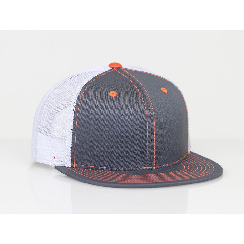 If you want to present a major league profile, you have to order the logoed Pacific Headwear Graphite/White/Neon Orange D-Series Snapback Trucker Mesh Cap. The dignified appearance of the structured profile will have everyone talking about your high taste in fashion. Blended polyester and twill front panels resist the types of rips and tears that relegate other caps to the recycling bin. The durable panels ensure high performance for all types of outdoor activities, from fly casting in a stream to tilling the soil for the upcoming planting season. Spandex allows the Trucker mesh back to stretch, which offers you all day comfort. Add your company to expand your brand presence in the community.Highlights