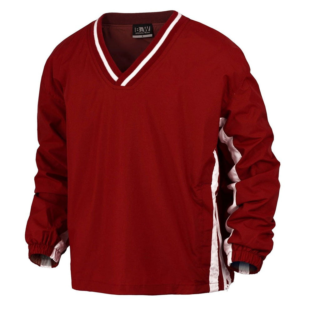 Sometimes you want something just a cut above and a little snazzy to show off your company logo. You have found the right item with the BAW Men's Red/White Two Stripe Pullover Jacket. It is fully lined and has a mesh body with nylon lower sleeves. The outer shell is washable, water repellant nylon. In addition to the contrasting trim, it has a flat bottom with left side zipper and drawstring. Choose from color and trim variations. Sizes range from S to 5X.Highlights
