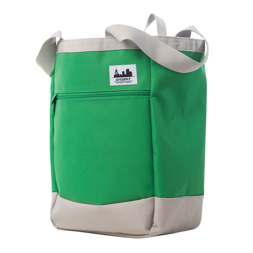 Get this stylish tote bag with a custom logo that features your business. The logo can be placed on the front of the tote. Keep everything safe on the water-resistant tote. Projekt Green/Tan Kandy Tote is an adorable bag for anyone that is always on the go and perfect for people of all ages. Can be used as an overnight bag or just as a go-to bag for your everyday valuables. This wonderful bag is made of polyester material and has an inside zipper pocket.Highlights