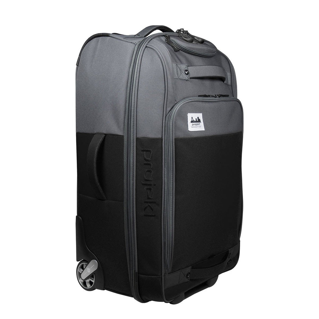 Add your corporate logo to the Projekt Black/Charcoal Check In 101 bag and easily find your luggage while waiting at baggage claim. This large-volume luggage is specially designed for longer business trips. It has an internal mesh zippered compartment, fleece-lined valuables pocket, and custom urethane wheels for a smooth yet durable ride. Other travelers will for sure have some luggage envy when they see you pull this off the carousel.Highlights