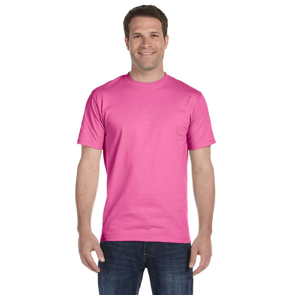 Custom logoed Hanes Men's Pink 6.1 oz. Beefy-T will be an instant favorite at all your recruiting events. Available in 44 different colors, your screen print will pop to grab the attention of passersby. Made of 100% ringspun cotton, the tag free neck label and cover seamed lay flat collar make this t-shirt the ultimate in comfort. Ideal as employee apparel for those that are working hard for the company or as a form of recognizable advertising at recruiting events. These t-shirts are so comfortable people will want to wear them daily, even outside of work. Place your order today to be prepared for the next big event.Highlights