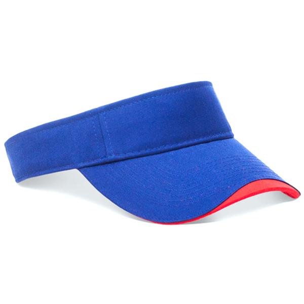 Keep the sun out of your eyes in a custom embroidery Pacific Headwear Royal/Red Polo Twill Hook-And-Loop Visor in four color combinations. The front panel in cotton fabric makes the ideal canvas for your corporate embroidery or company logo in nearly every color. A pro-stitched finish and contrast binding under visor means this visor will stand the test of time even if you wear it daily. Use this as an accessory on the next corporate retreat or to wear to your favorite sporting events. Add a custom logo and use as part of employee apparel to complete a uniform that is completely unique. Choose the design that best represents your company and place an order today.Highlights