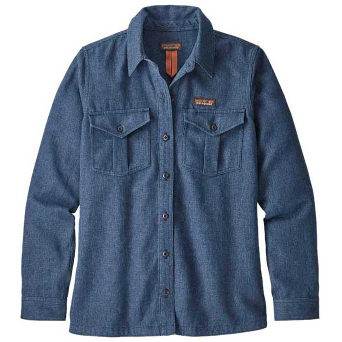 Stay protected in a custom logo Patagonia Women's Stone Blue Farrier's Shirt, no matter what your current schedule may hold. The heavy duty long sleeve shirt is made of natural and recycled materials for an eco friendly design that is fair trade certified sewn. Add a corporate embroidery to give as employee gifts for those who work outdoors, with tools, or in tough environments. The generous collar can be flipped up or down and button cuffs mean the sleeves can be easily rolled to the elbow. Pleated chest pockets hold lots of needed items and the longer hem makes it easy to wear this tucked or untucked. Perfect for layering, once the day is over, hang this with the webbing hang loop and head home.Corresponding Men's Style: Patagonia Men's Stone Blue Farrier's Shirt