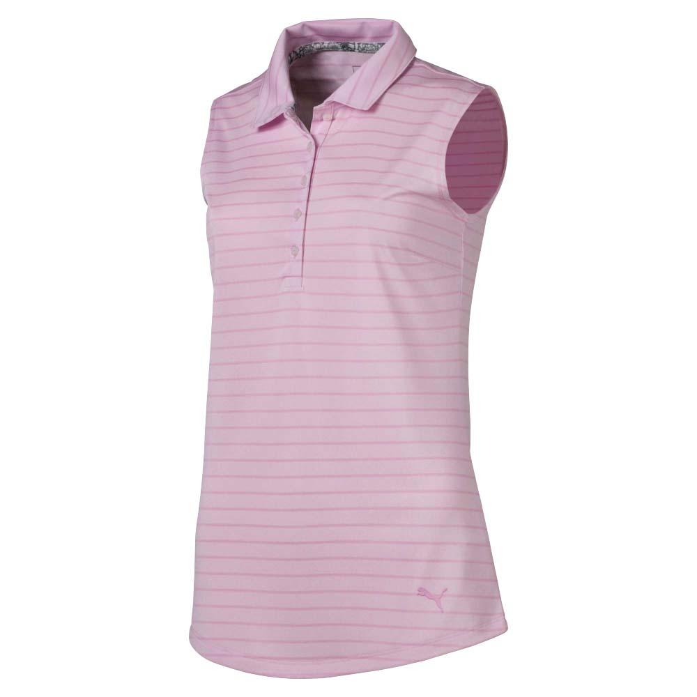 Puma Golf Women's Pale Pink Rotation Stripe Sleeveless Golf Polo