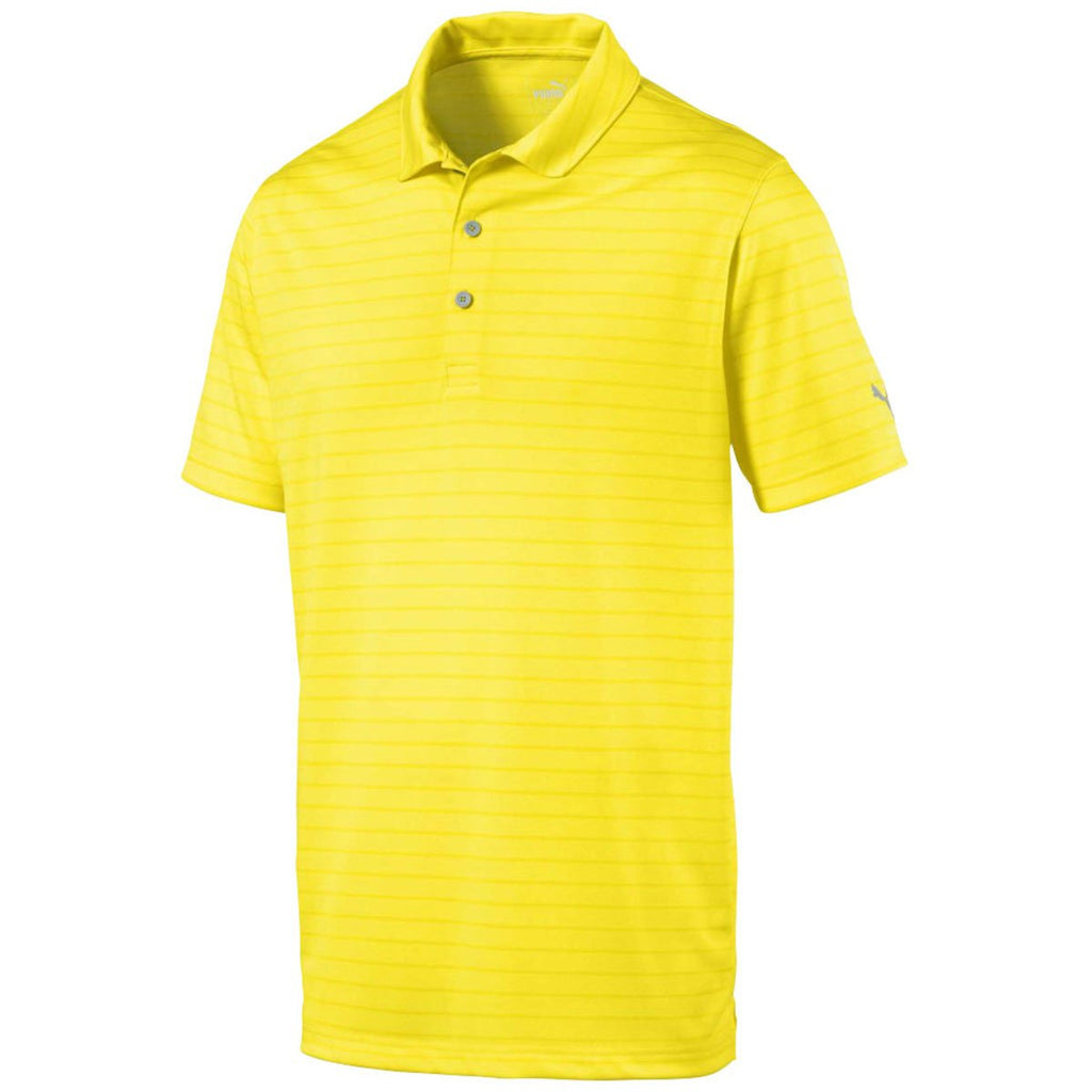 Puma Golf Men's Blazing Yellow Rotation Stripe Golf Polo has just the right amount of flair for the golfer or professional in your life. Easily transitioning from the office to the green, this polo comes in a variety of colors, all with stripes, that can easily be custom embroidered to fit your needs. Ideal as employee apparel with a company logo this polo offers a professional look with short sleeves for those hot summer days. Also a great option for the next company outing this custom logo polo can show team spirit for every event.Highlights