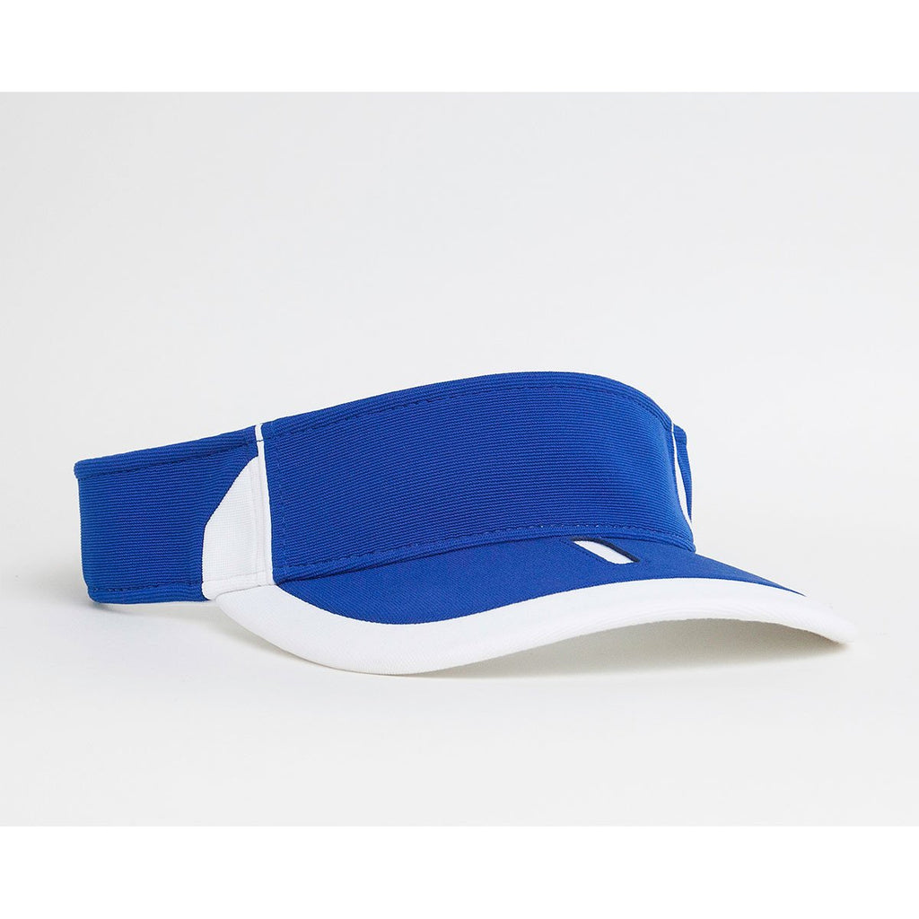 Turn the multi-purpose logoed Pacific Headwear Royal/White Adjustable M2 Performance Sideline Visor into an effective marketing strategy by attaching your corporate logo on the large imprint area. Hand out the stylish visor at trade shows to increase awareness of your company. Contrast inserts present a visually appealing look that pairs well with most types of recreational attire. The two-inch crown keeps the sun from becoming a problem during midday softball games. M2 Performance fabric endures the punishment inflicted by frequent use to give you a durable visor for years to come. The fabric resists rips and tears to always appear fashionable.Highlights