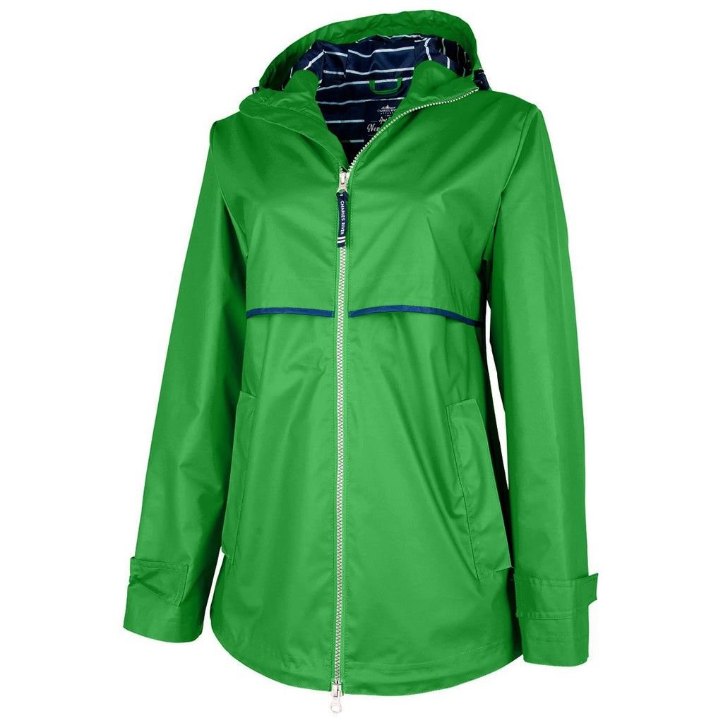 Charles River Women's Kelly Green/Stripe New Englander Rain Jacket with Print Lining