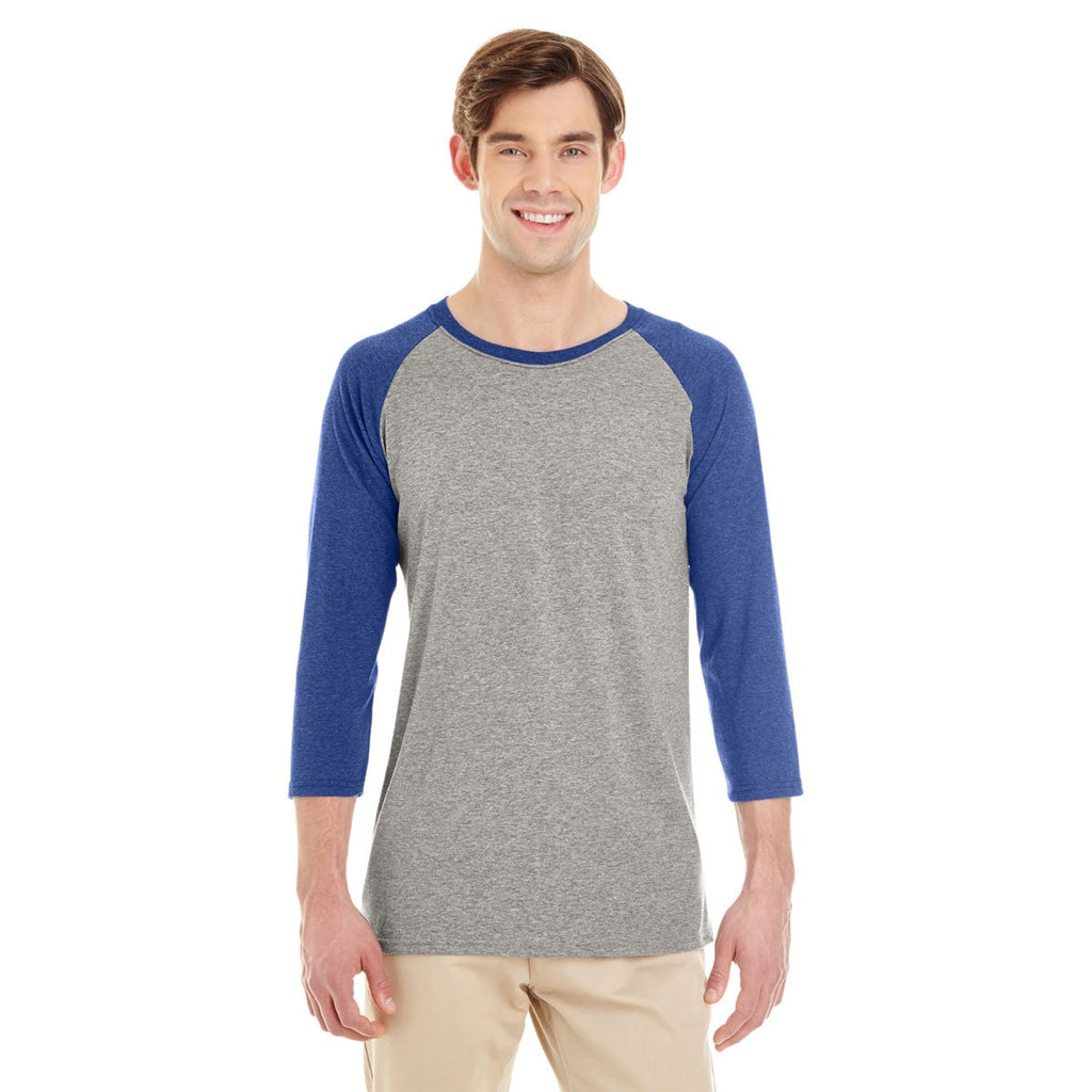 The Corporate Logo Jerzees Men's Oxford/True Blue Heather 4.5 Oz Tri-Blend Baseball Raglan Is A Stylish Clothing Item You Are Going To Want To Wear Again And Again. Available In Seven Classic Colors, This 3/4-Length Sleeve Shirt With Color Contrast Pattern Is Sure To Be A Favorite In Your Closet. Other Features You'Ll Adore Include The Double-Needle Coverstitching Around The Neck, Tear Away Label, And Double-Needle Hem Sleeves And Bottom. Purchase This Shirt With Your Company Logo Embroidered On It And You Have An Excellent Employee Apparel Option For Your Loyal Staff Members At Work.Highlights