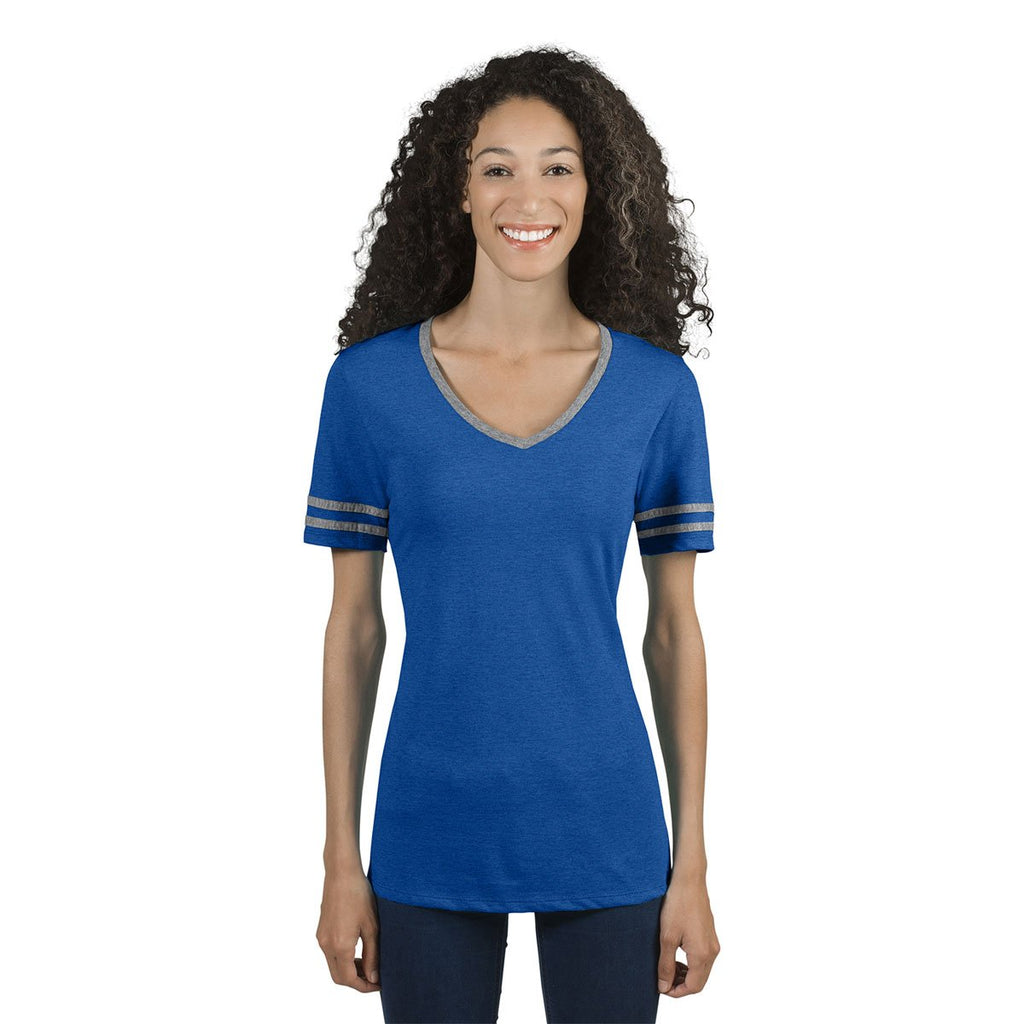 Jerzees Women's True Blue Heather/Oxford 4.5 Oz Tri-Blend Varsity V-Neck T-Shirt