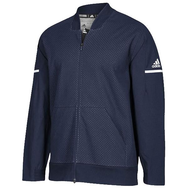 adidas Men's Collegiate Navy/White Squad Bomber Jacket with custom design offer a vintage feel in an updated look. Created from recycled polyester and cotton on the body, this bomber jacket truly is the bomb. Whether you want to get noticed at the next athletic related event or just want a jacket to show off going to and from the office, this custom embroidered jacket is a must have. Offer these bombers as high end corporate gifts with water resistant sleeves and zippered pockets for easy wear. Place an order for one or for many to make a real statement that will get you noticed.Highlights