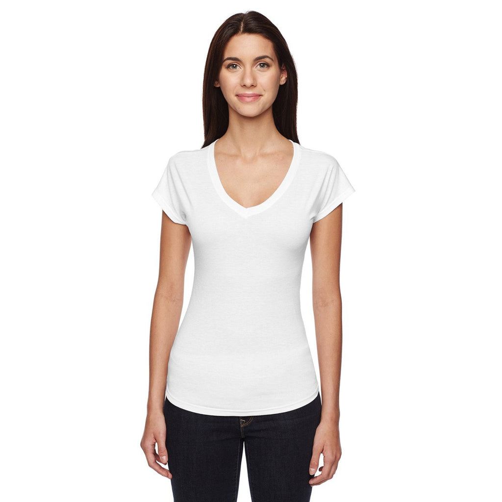 V-neck t-shirts stand out in the crowded field of corporate apparel, which makes the Anvil Women's White Triblend V-Neck T-Shirt a must have addition for any fashion conscious professional. Cotton, polyester, and rayon produce a multi-purpose t-shirt that you can wear out for a night on the town or underneath a snappy dress shirt. The preshrunk fabric never shrinks after countless wash and dry cycles. Side seam construction ensures you never experience rips and tears in the fabric at the worst possible times. Add your company logo to expand awareness of your brand in the community.Corresponding Men's Style: Anvil Men's White Triblend V-Neck T-Shirt