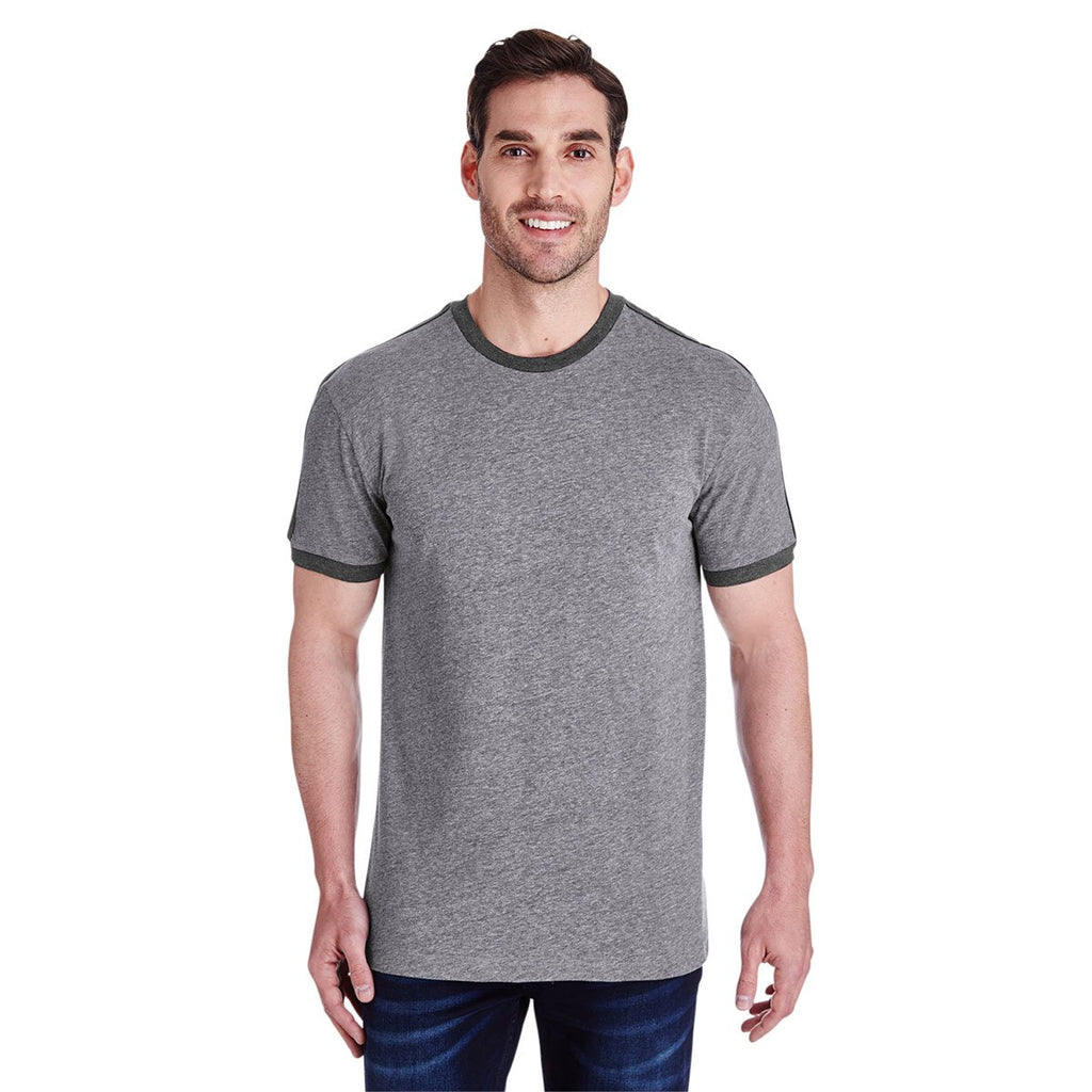 The cotton layout of this LAT Men's Granite Heather/Vintage Smoke Soccer Ringer Fine Jersey T-Shirt provides the perfect surface for your company's custom logo. The taped neck creates an attractive fit that looks flattering on any man. The ringed effects on the sleeves and collar will complement your logo well. Combined with your custom branding, this shirt is the perfect choice for company athletic leagues or recreational events. It also works well at casual recruiting events or as company giveaways.Corresponding Women's Style: LAT Women's Granite Heather/Vintage Smoke Soccer Ringer Fine Jersey T-Shirt