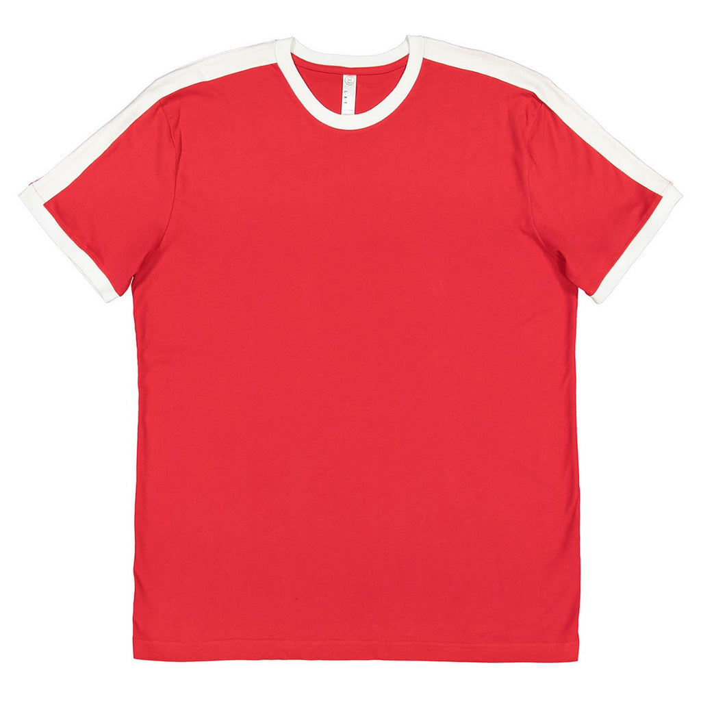 LAT Men's Red/White Soccer Ringer Fine Jersey T-Shirt