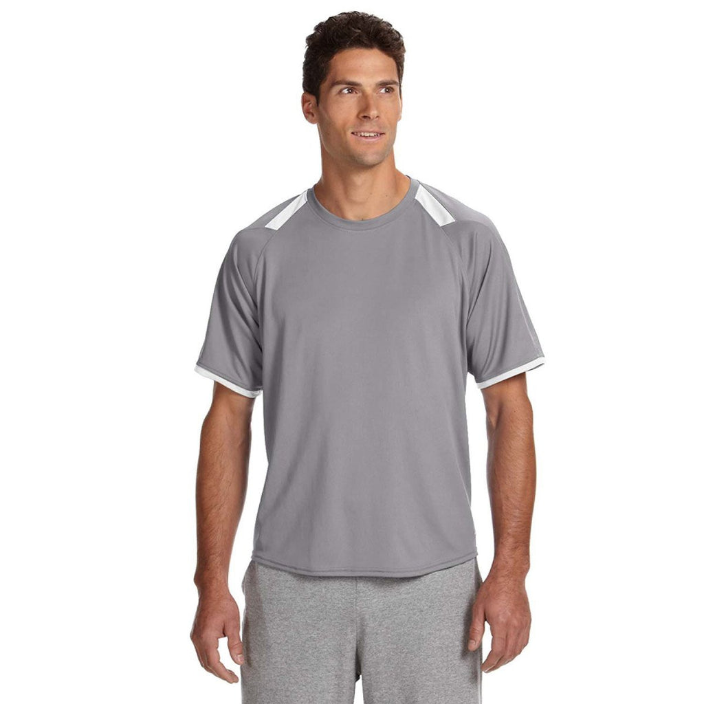 Russell Athletic Men's Steel/White Dri-Power T-Shirt with Colorblock Inserts
