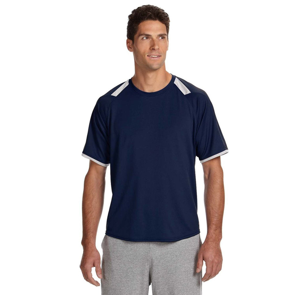 Russell Athletic Men's Navy/White Dri-Power T-Shirt with Colorblock Inserts
