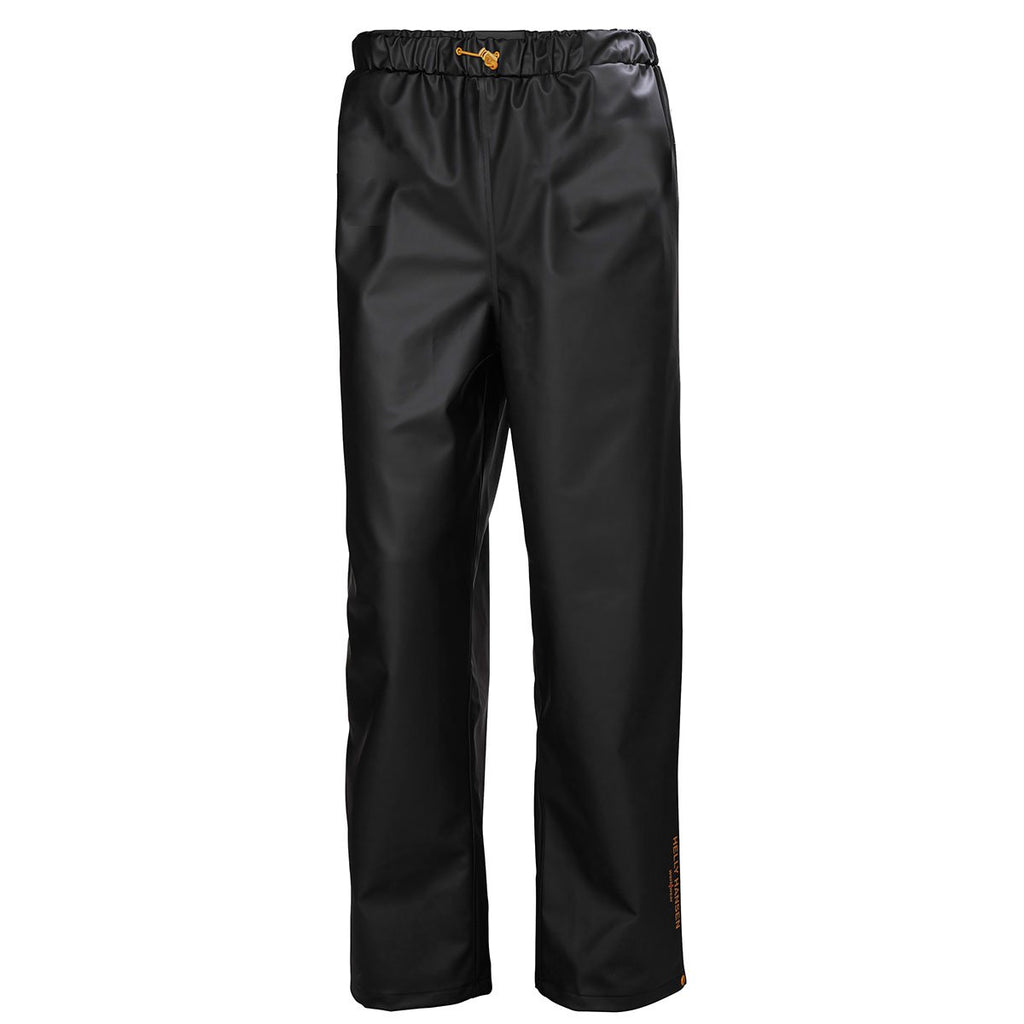 Let the rain not disrupt you from reaching your company goals with this customizable Helly Hansen Men's Black Gale Rain Pant. No job is too tough for this durable and ergonomic workwear waterproof pant designed with an elastic waist for a comfy fit. Its metal snap fastener prevents water from getting in while moisture-wicking knit lining wicks away sweat and eliminates stickiness. 4-way stretch fabric allows freedom of movement, but still strong enough for medium duty work. The outer PVC coating ensures maximum waterproofing and withstands stretching as well as wear and tear. These customizable waterproof rain pants are perfect for days when the wet weather strikes. Useful for commercial fishing industry and other similar businesses.