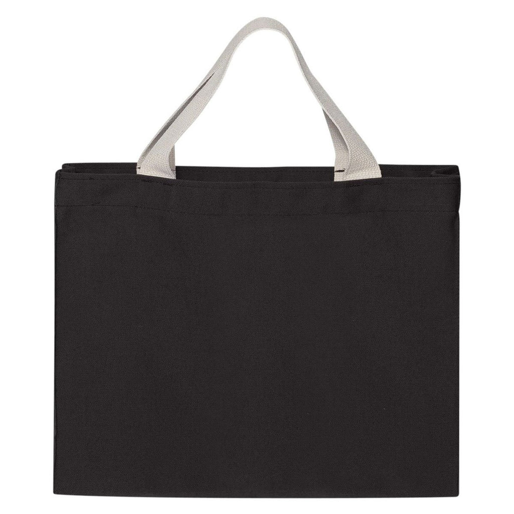 If you're looking for another way to promote your company name, put your custom logo on the Bayside Black USA-Made Medium Gusset Tote. You could hand out a bunch of these logoed bags as promotional items at recruiting events or trade shows. Your company also could make use of the Bayside Black USA-Made Medium Gusset Tote by equipping your workers who have to carry items out in the field. Already uniformed in logoed Bayside garments, these custom bags give your company an attention-to-detail vibe and add another layer of exposure for your company brand. They'd also make nice employee gifts.