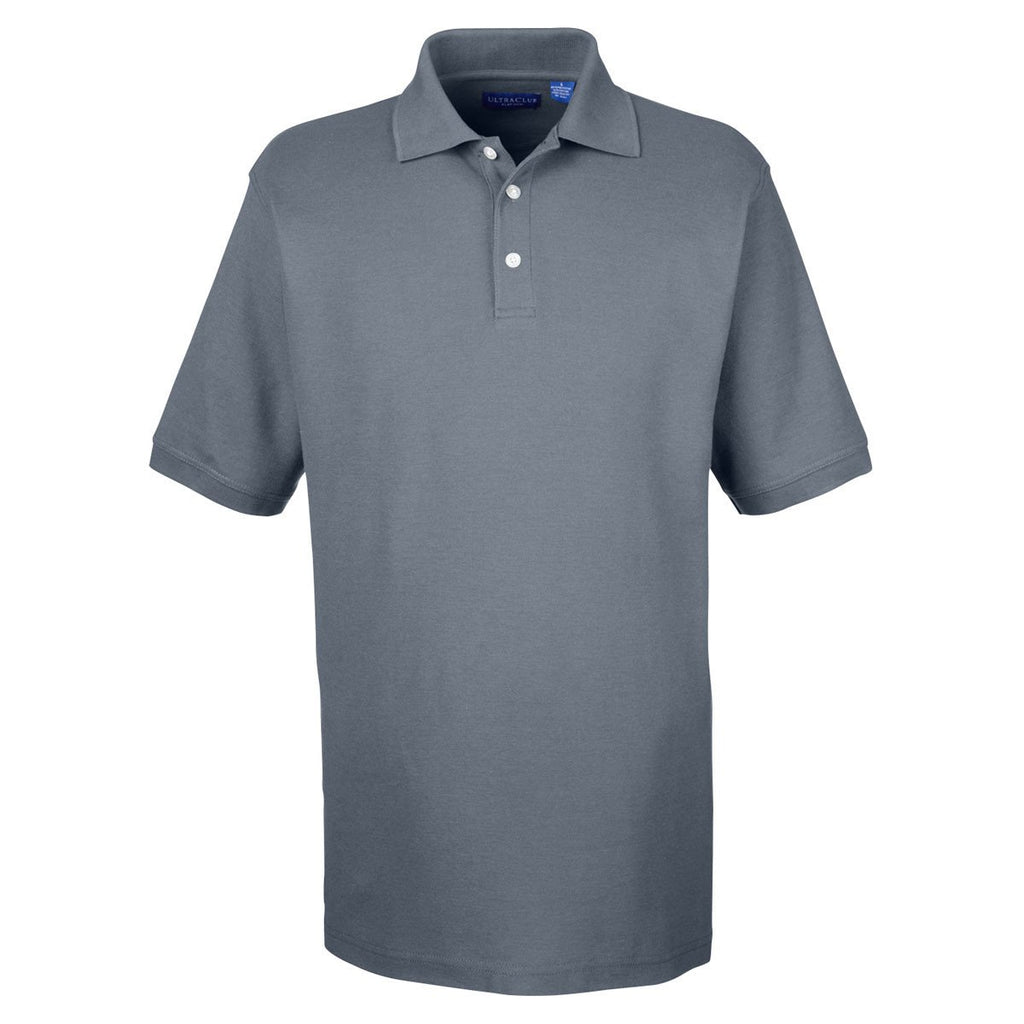 UltraClub Men's Charcoal Platinum Honeycomb Pique Polo