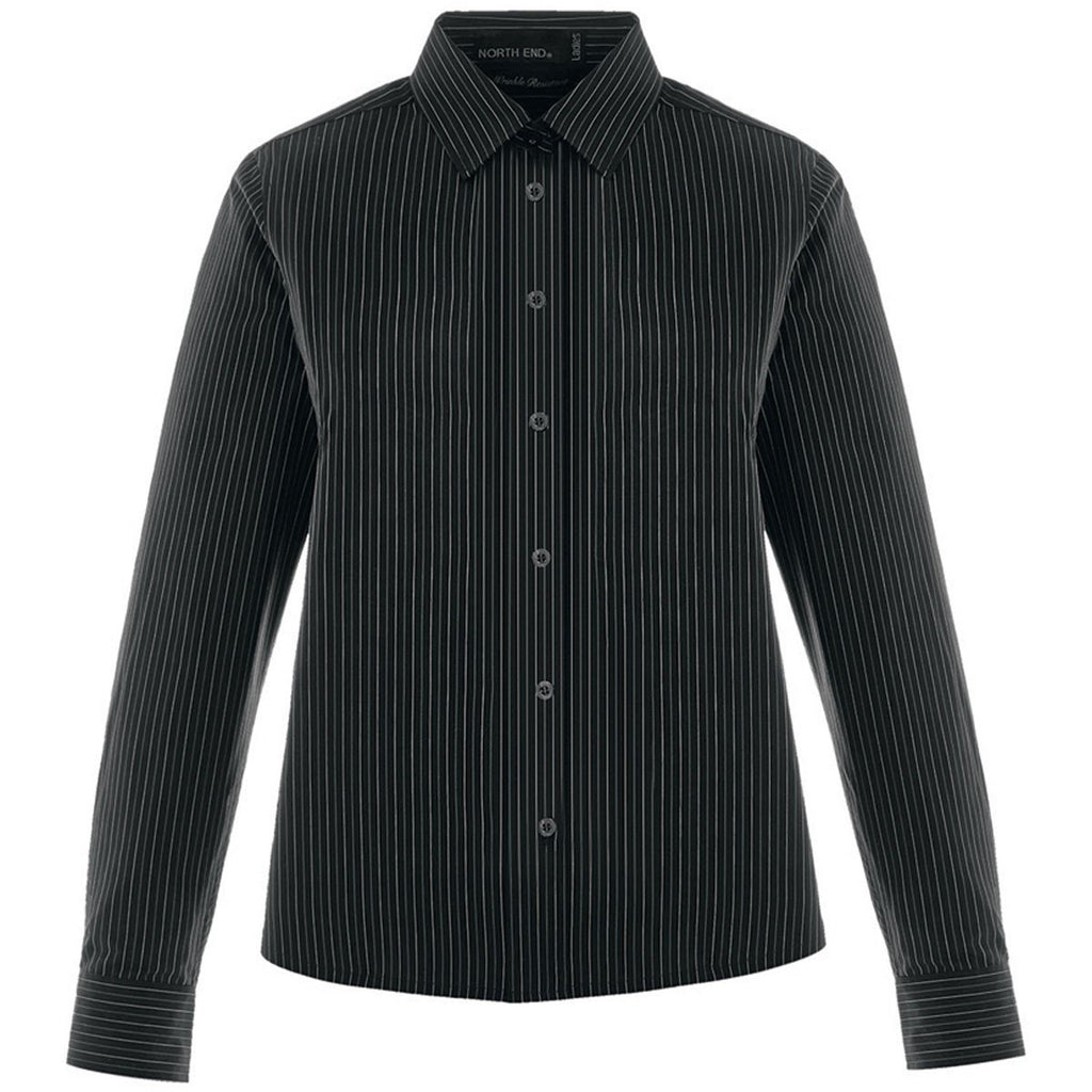 North End Women's Black Align Wrinkle-Resistant Dobby Vertical Striped Shirt