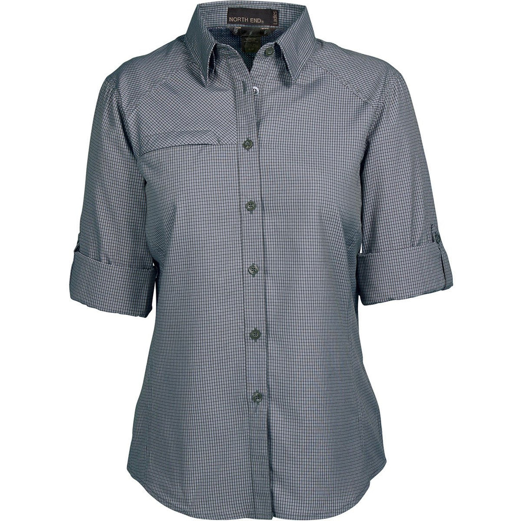 Adjustable cuffs allow you to roll up the sleeves on the North End Women's Navy Excursion F.B.C. Textured Performance Shirt, whenever you need to pick up the pace on a work project. Rugged polyester includes moisture wicking technology to keep you cool during high-pressure events. The two-tone melange polyester presents a subtle, yet aesthetically appealing design that works in most professional environments. Double-needle flat felled side and underarm seams do an excellent job of preventing rips and tears to the fabric. The back yoke that includes side pleats adds a unique fashion touch to this versatile work shirt.