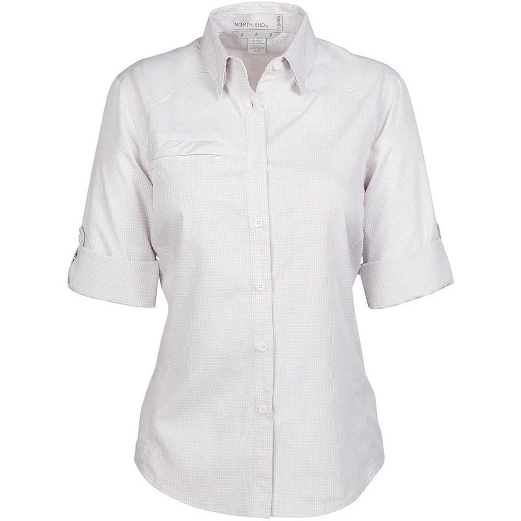 Adjustable cuffs allow you to roll up the sleeves on the North End Women's Crystal Quartz Excursion F.B.C. Textured Performance Shirt, whenever you need to pick up the pace on a work project. Rugged polyester includes moisture wicking technology to keep you cool during high-pressure events. The two-tone melange polyester presents a subtle, yet aesthetically appealing design that works in most professional environments. Double-needle flat felled side and underarm seams do an excellent job of preventing rips and tears to the fabric. The back yoke that includes side pleats adds a unique fashion touch to this versatile work shirt.Corresponding Men's Style: North End Men's Crystal Quartz Excursion F.B.C. Textured Performance Shirt