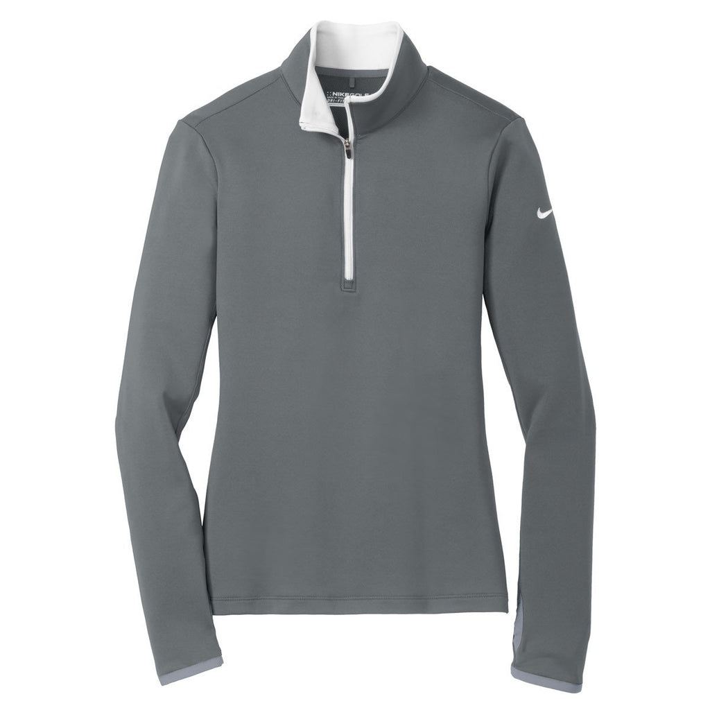 There's a reason why Nike is the most popular sportswear brand in the world: items like the Nike Women's Grey/White Dri-FIT Stretch 1/2-Zip. Comfortable, fashion-forward, and tailor made for your company logo, this is one heck of a quarter zip. With a tailored, feminine fit, and stretch built into the fabric, this is a zip-up that not only feels great, but looks great, too. It is made of a 93/7 polyester/spandex Dri-FIT fabric, with Dri-FIT moisture-wicking technology that will keep you cool and dry, and a contrast collar, open cuffs, and an open hem will keep you looking great. The trademark Swoosh is located on the sleeve, so that means you've got an open left chest for your embroidered corporate logo.Highlights
