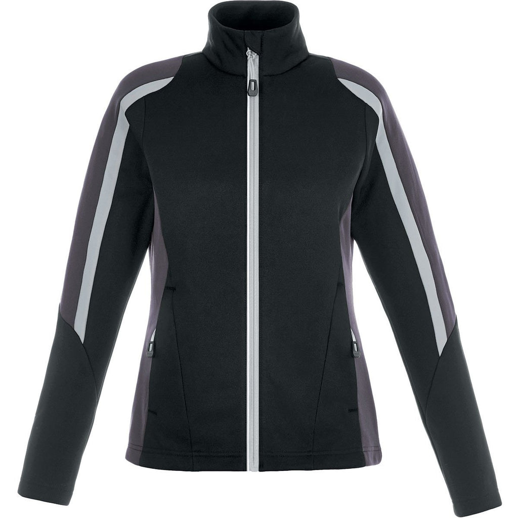 North End Women's Black Strike Colorblock Fleece Jacket allow you to access an audio port via the inside left pocket. The lower pockets that include contrast reverse coil zippers allow you to carry electronic devices on you, whenever you pedal down a bike trail or take a brisk walk in the park. Moisture wicking polyester brushed back fleece ensures you remain comfortable during the most intense sporting competitions. The reflective print on the back of North End Women's Black Strike Colorblock Fleece Jacket alerts drivers of your presence along busy roads. Attach a company logo to increase your company's exposure.Corresponding Men's Style: North End Men's Black Strike Colorblock Fleece Jacket