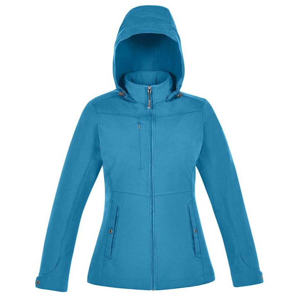 Three-layer soft shell comfort only begins to describe the benefits of wearing this popular jacket. Hybrid contrast panels located at the back and under the arms enhance the aesthetic appeal of one of the most stylish jackets on the market. Give the North End Women's Blue Ash Forecast Three-Layer Light Bonded Travel Jacket to your loyal customers, but make sure to attach your corporate logo for expanding awareness of your brand. The mostly polyester multi-weather jacket never succumbs to rigorous use or prolonged exposure to water. Brushed tricot-lined lower pockets give you instant access to electronic devices.Corresponding Men's Style: North End Men's Blue Ash Forecast Three-Layer Travel Soft Shell Jacket