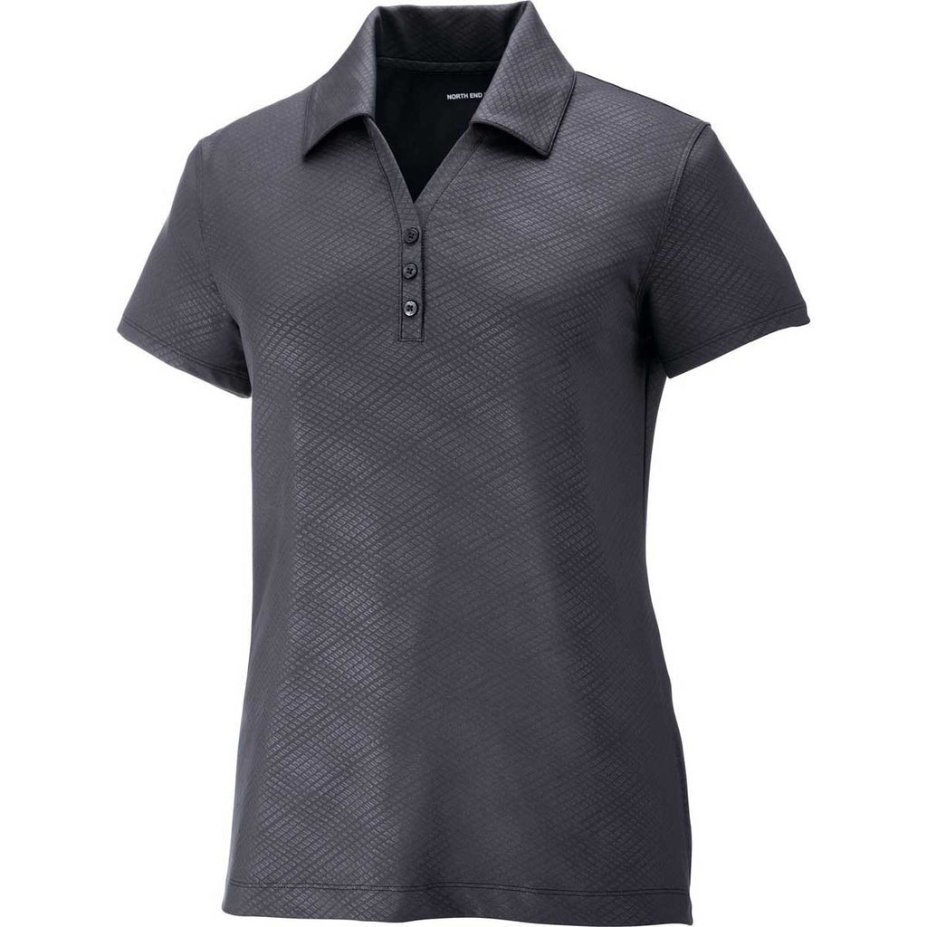 The combination of polyester and spandex provide long lasting durability, as well as stretch performance for the North End Women's Black Silk Stretch Embossed Print Polo . Spandex provides more movement flexibility, which comes in handy during recreational activities. Antimicrobial properties prevent the polo from smelling like the gym or tennis court. Ultraviolet protection allows you to work in the yard from sunrise to sunset, without ever placing your skin in harm's way. Add your company logo to the large imprint area to further increase the exposure of your brand. The three-button placket enhances the aesthetic appeal of the North End Women's Black Silk Stretch Embossed Print Polo.Corresponding Men's Style: North End Men's Black Silk Stretch Embossed Print Polo