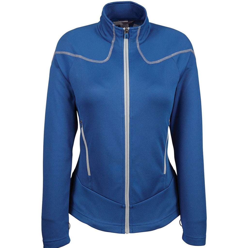 The North End Women's Nautical Blue Two-Tone Brush Back Jacket contains 100% polyester brushed back stripe eyelet. Stylish in design, this women's jacket includes moisture wicking technology that eliminates the discomfort caused by perspiration building on your body. Perfectly shaped cuffs and contrast reverse coil pocket zippers complete the fashion statement. Add your company logo to the large imprint area to promote your products and services at professional networking events. The audio port access via the left inside pocket allows you to listen to your favorite tunes. Wear the versatile jacket to work and formal social events.Corresponding Men's Style: North End Men's Nautical Blue Two-Tone Brush Back Jacket