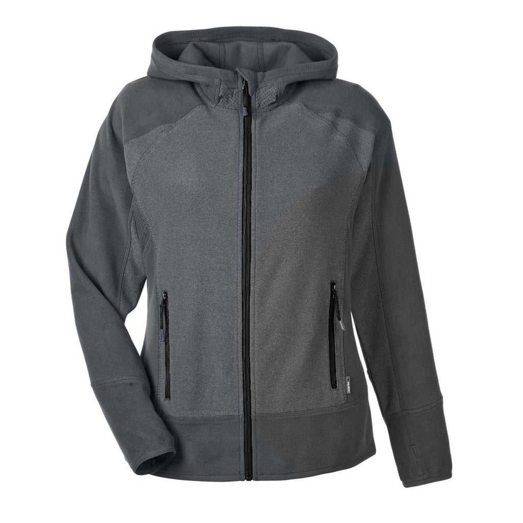Whenever you exert a little energy, you want to wear a jacket that stretches to the beat of your athletic movements. Polartec North End Women's Carbon/Black Polartec Active Jacket include sleeve bindings that stretch every time you move your arms. Whether you cast a rod into a lake or churn your arms during a race, this line of jackets offers maximum body movement flexibility. Rugged Polartec Thermal Series fleece complements the perforated pongee located on the center of the hood to ensure high breathability. An audio port gives you instant access to your vast collection of tunes.Corresponding Men's Style: North End Men's Carbon/Black Vortex Polartec Active Fleece Jacket
