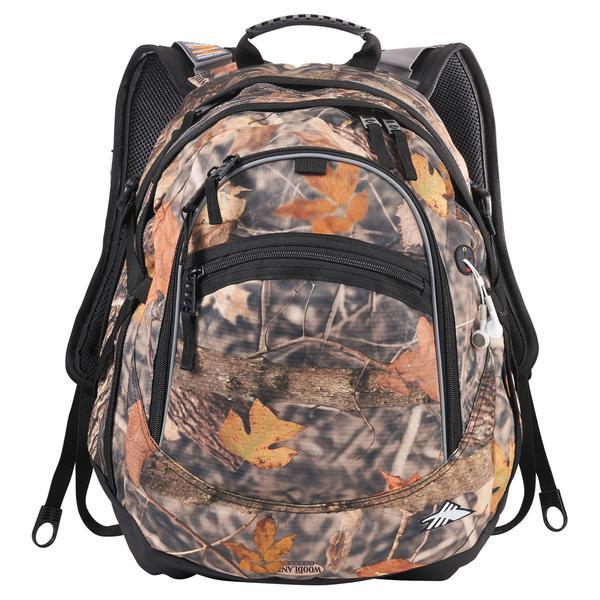 The High Sierra Camouflage Fat-Boy Backpack has room under the outside zipper space for a corporate logo. You can use this as a gift for those who enjoy going outdoors and traveling to different places. The backpack includes a front pocket organizer, a mesh pocket, and a key fob among other items for convenience. Add your custom logo to this backpack to make it the perfect marketing tool for your company outside of the office.Highlights
