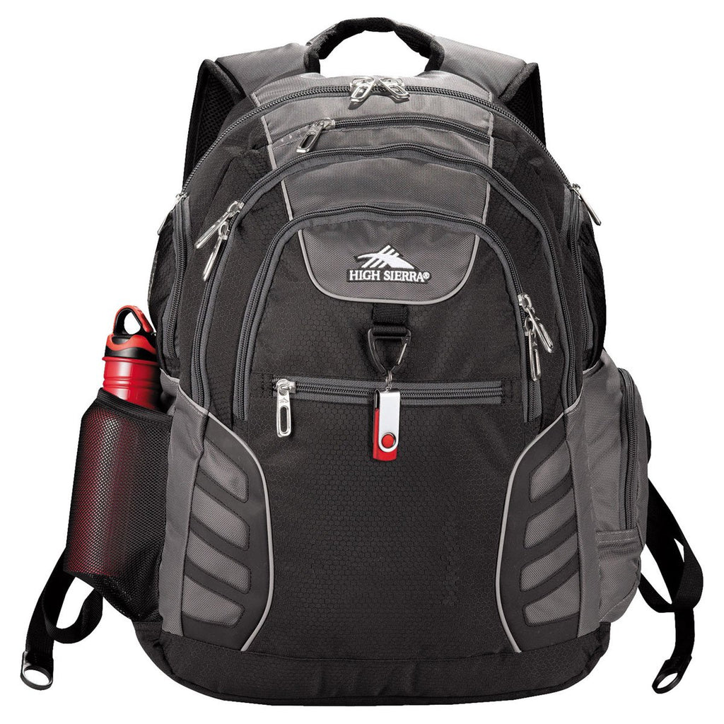 Everything you need to transport can fit into the High Sierra Black Big Wig 17" Computer Backpack. With your company's added custom logo, this works great as a marketing tool. The design features three large compartments for storing items. A few smaller zippered compartments are included on the sides for added convenience.