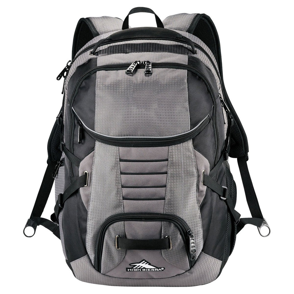 Add your company's logo on the top part of the High Sierra Grey Haywire 17" Computer Backpack. The logo will always be noticed as the user opens up the top pocket. The backpack includes a beverage holder, a small pocket on the bottom part, and a padded inside sleeve for a laptop computer. The backpack is suitable for most uses and is perfect to gift to include in an employee welcome package.Highlights