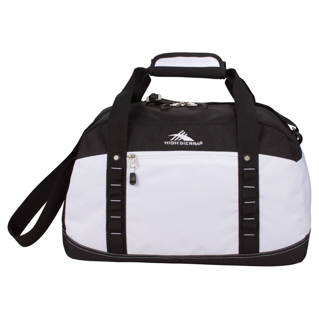 See what the High Sierra White Free Throw 21.5" Duffel Bag offers for your promotional use. The bag has room on the side for your logo. The ripstop surface can support your logo in moments. The comfortable design of the bag adds a nice touch. The padded handles create a fine grip. You can order many of these bags and provide them to your employees for their convenience.Highlights
