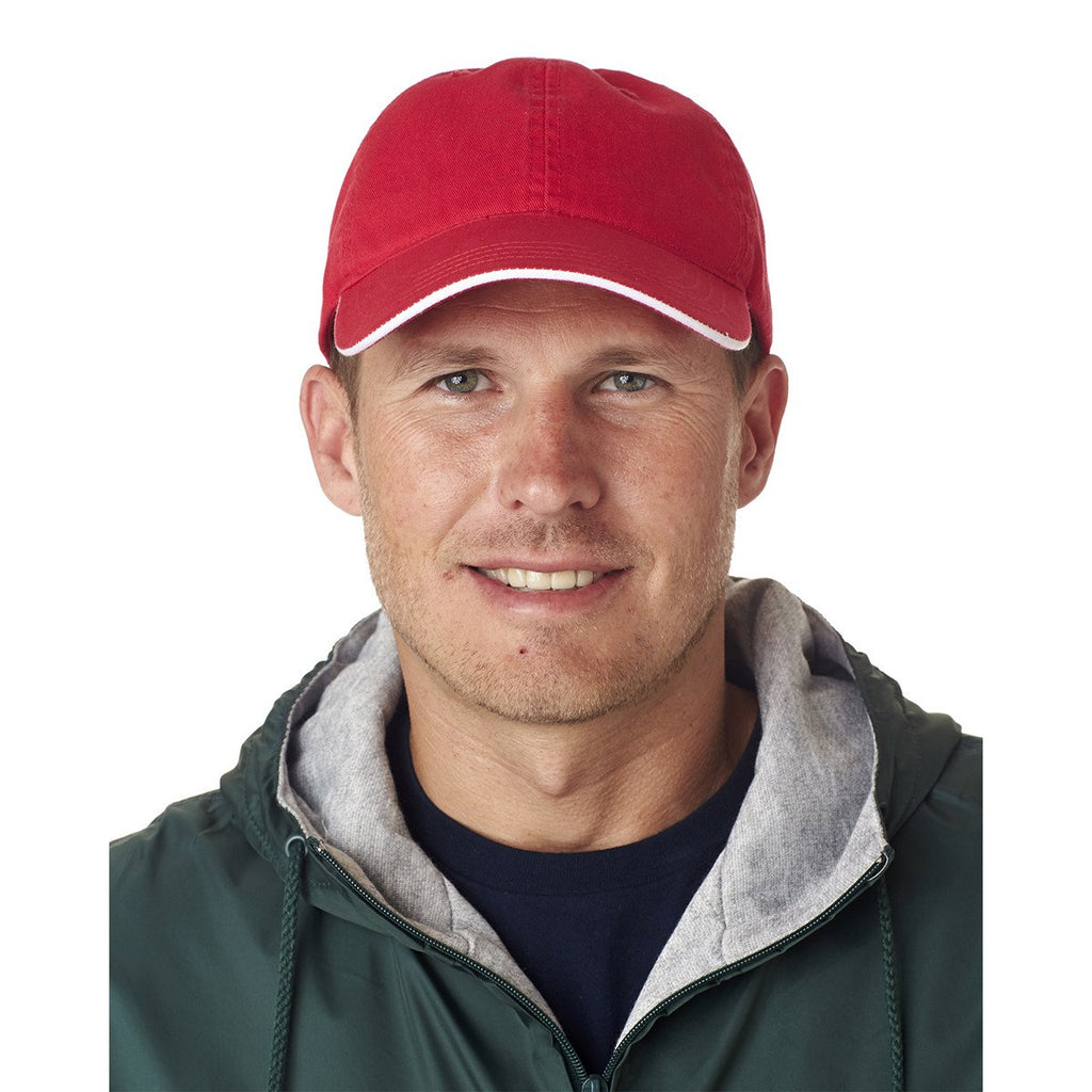 UltraClub Men's Red/White Classic Cut Chino Cotton Twill Unstructured Sandwich Cap