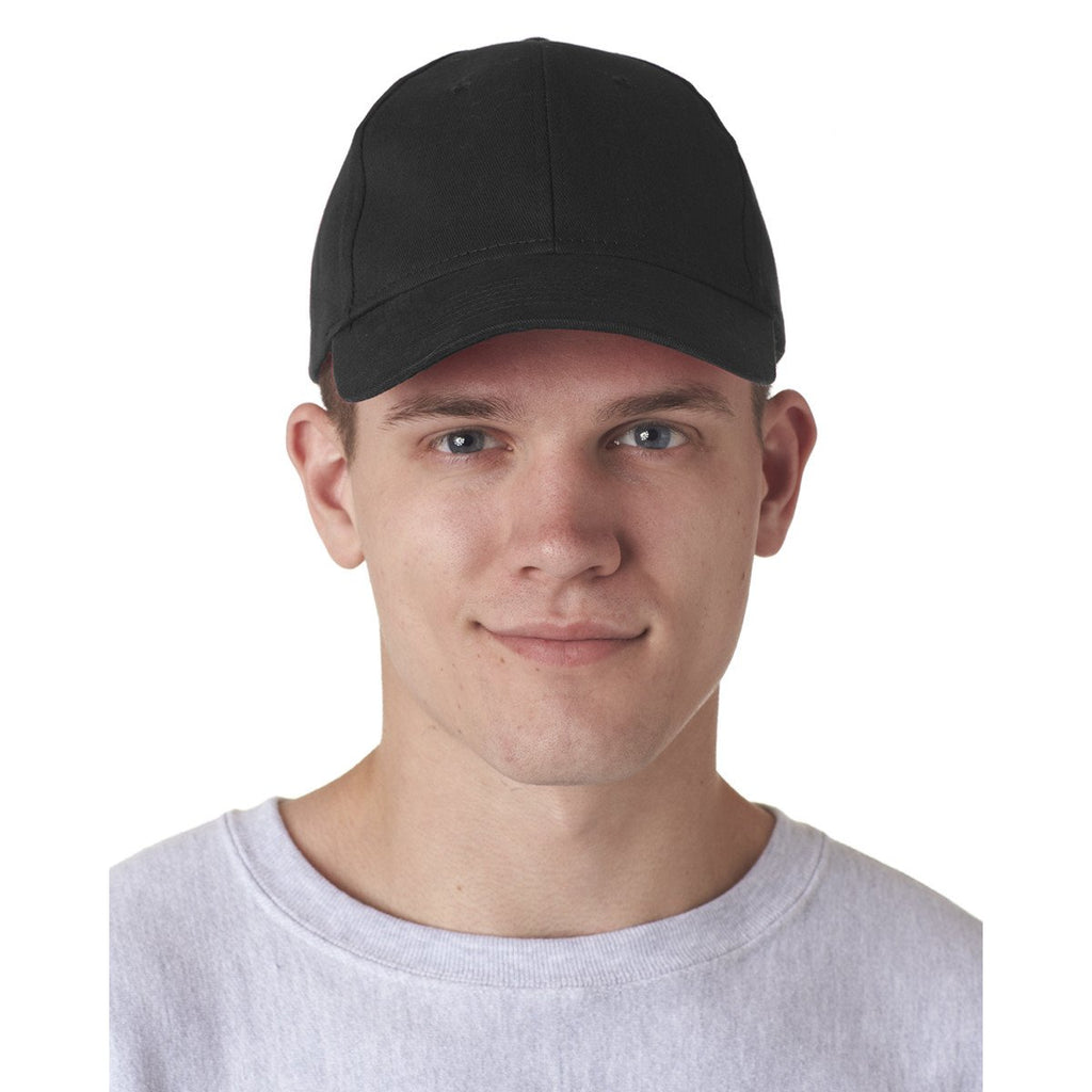 UltraClub Men's Black Classic Cut Brushed Cotton Twill Structured Cap