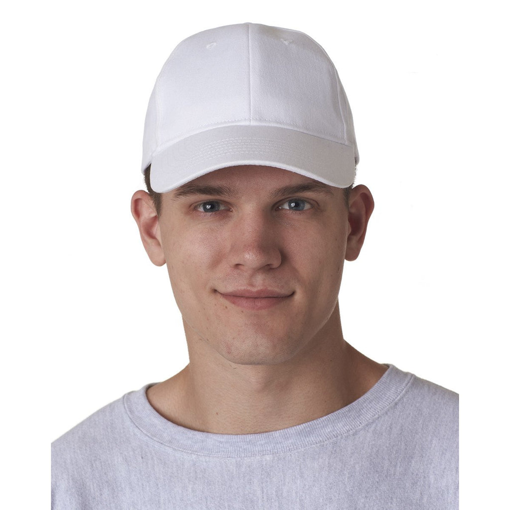 UltraClub Men's White Classic Cut Brushed Cotton Twill Structured Cap
