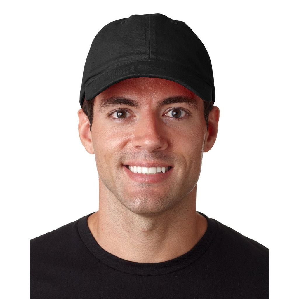 UltraClub Men's Black Classic Cut Brushed Cotton Twill Unstructured Cap