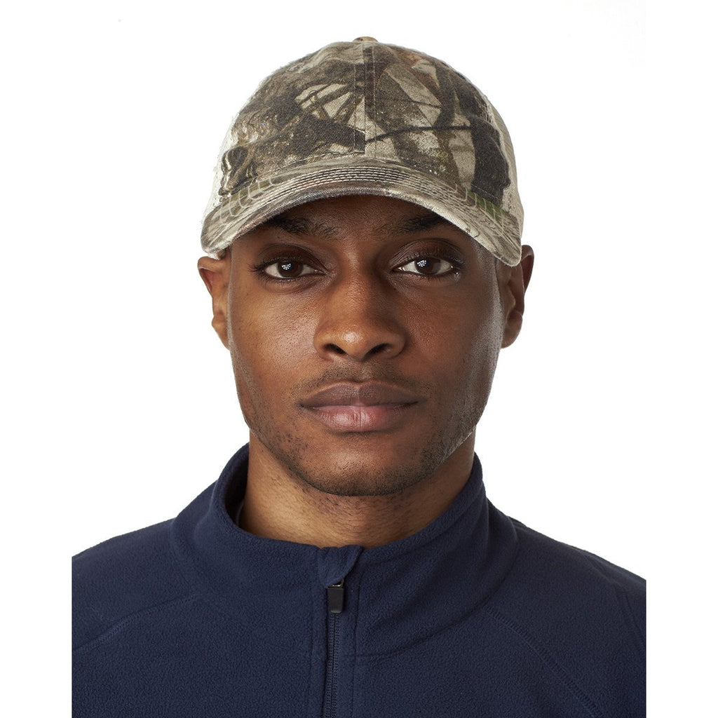UltraClub Men's Camo/Stone Classic Cut Brushed Cotton Twill Unstructured Trucker Cap