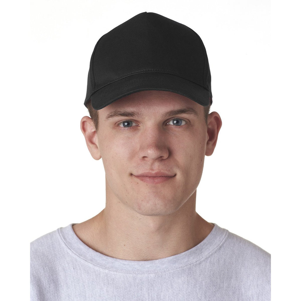 UltraClub Men's Black Classic Cut Cotton Twill 5-Panel Cap
